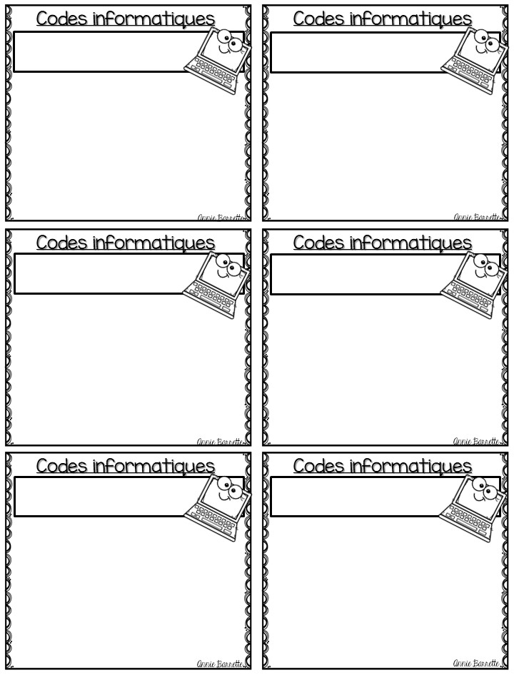 La deuxième ressource que je partage avec vous est pour les élèves. Il s'agit de petites cartes où vous pouvez écrire les codes d'accès informatique des élèves. Le document est aussi en format modifiable afin que vous puissiez y inscrire les informations nécessaires à l'ordinateur. Il y a deux formats différents soit 4 par page ou 6 par page.